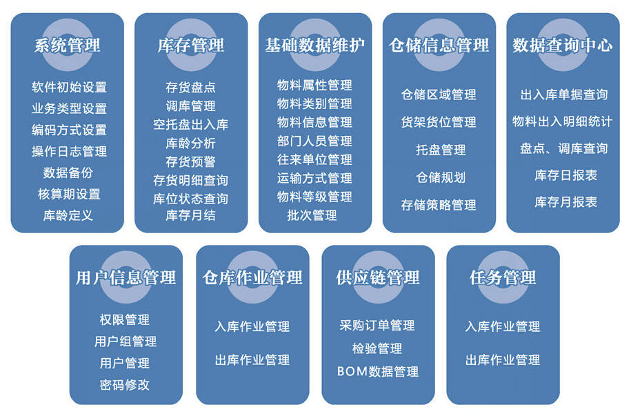 仓储管理软件 仓储管理软件采用RF(射频)技术、计算机技术、网络通讯技术等信息化技术,对仓库设备运行状态、仓储作业的作业计划、作业调度、作业过程以及作业变更等方面进行管理和监控,从而对仓库物资的管理实现识别、库存准确查询、库位准确定位、仓储物资出入管理、物资分拣、物资盘点、货位虚拟隔离、实时报表输出等一系列数字化操作。